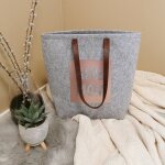 Der robuste Filz sorgt für Stabilität und Langlebigkeit, während die braunen Trageriemen in Leder-Optik der Tasche einen hochwertigen, zeitlosen Look verleihen.