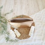 Das robuste Kunstleder sorgt für Stabilität, ohne dass die Tasche steif wirkt – sie lässt sich platzsparend einpacken und schützt Kosmetikprodukte zuverlässig. Die Außenfläche ist leicht abwischbar, das Innenfutter kann einfach mit einem feuchten Mikrofasertuch oder einem speziellen Textiltuch gereinigt werden.