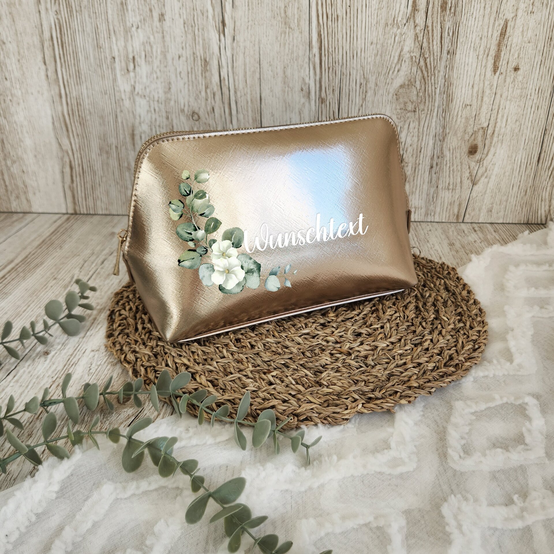 Die große Kosmetiktasche bietet ausreichend Platz für Pflegeprodukte wie Cremen, Shampoo oder Zahnpasta, während die kleine Variante ideal für Make-up, Haaraccessoires oder als Reiseapotheke geeignet ist. Ob als praktisches Reise-Accessoire oder als individuelles Geschenk für Frauen – diese personalisierte Kosmetiktasche überzeugt mit Qualität, Design und Funktion.