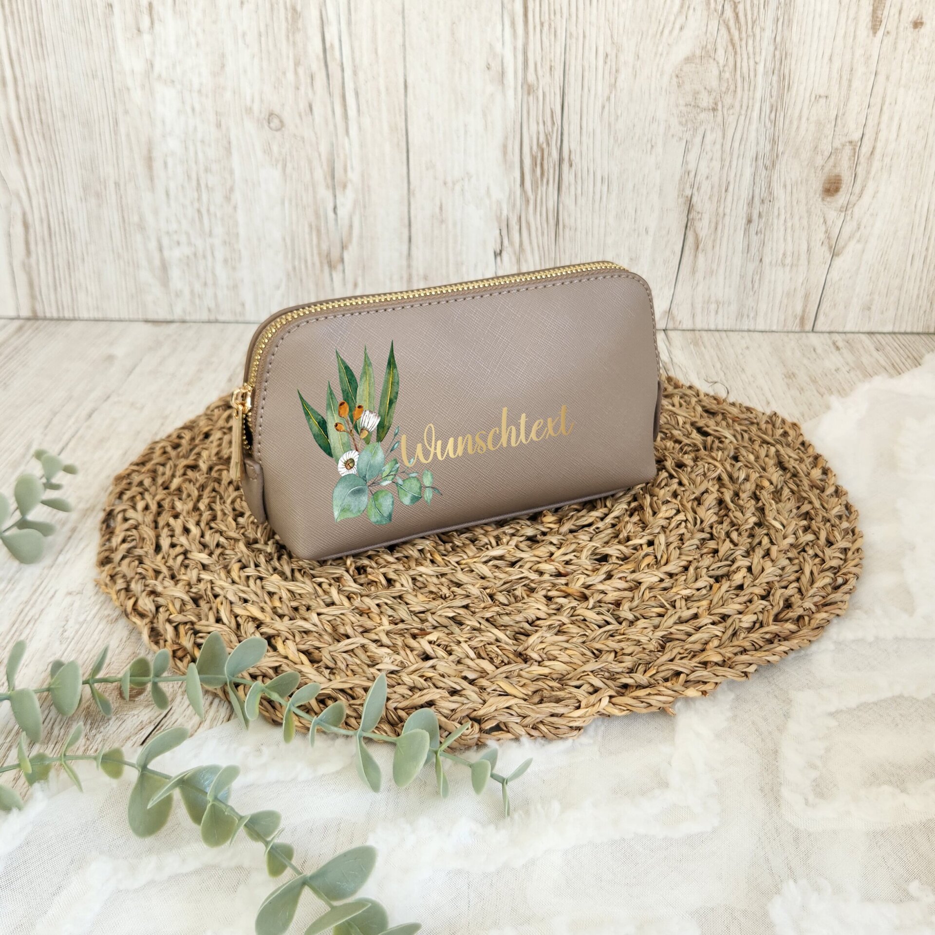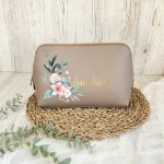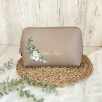 • Kosmetiktasche aus hochwertigem Kunstleder in taupe mit goldenem Reisverschluss