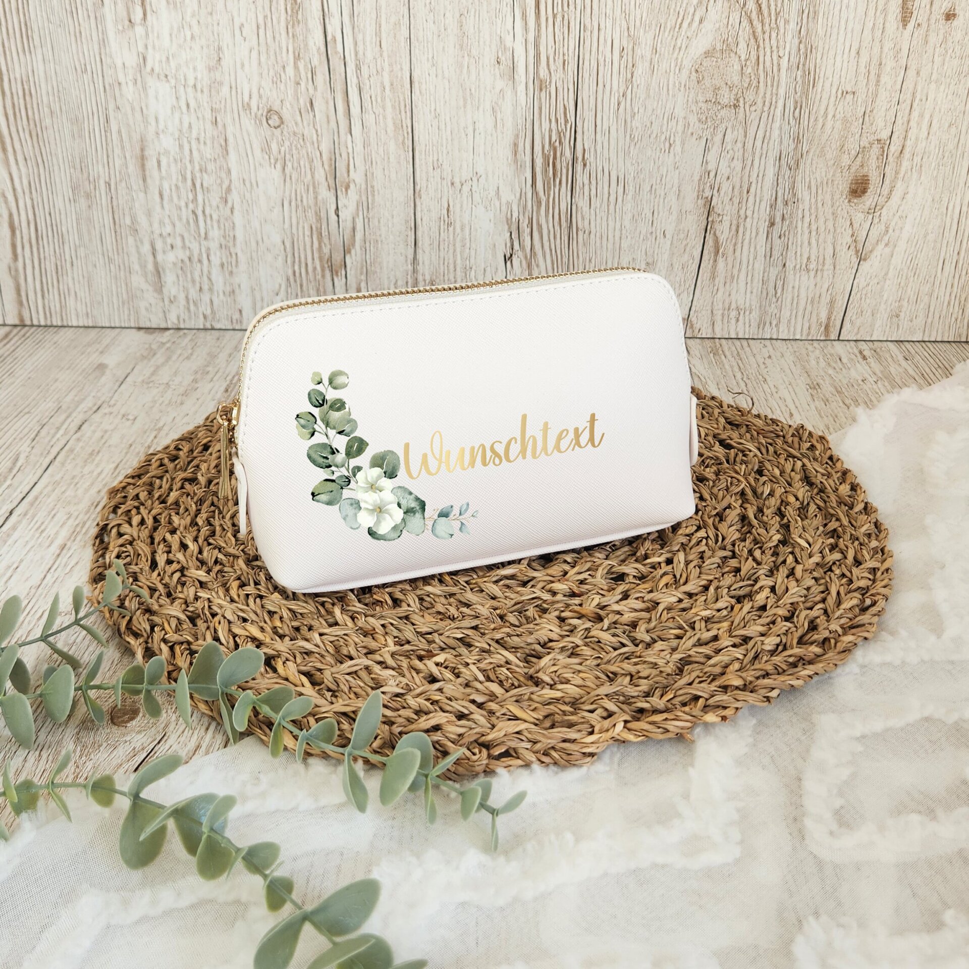 - Kosmetiktasche aus hochwertigem Kunstleder in weiß mit goldenem Reisverschluss