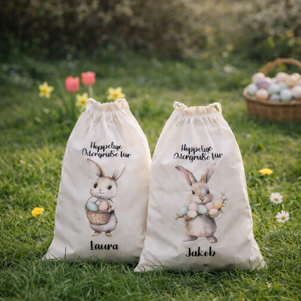 Perfekt für die Ostereiersuche im Garten, als Geschenkbeutel vom Osterhasen oder als liebevolle Osterüberraschung für Kinder. 🐰🥚🌷