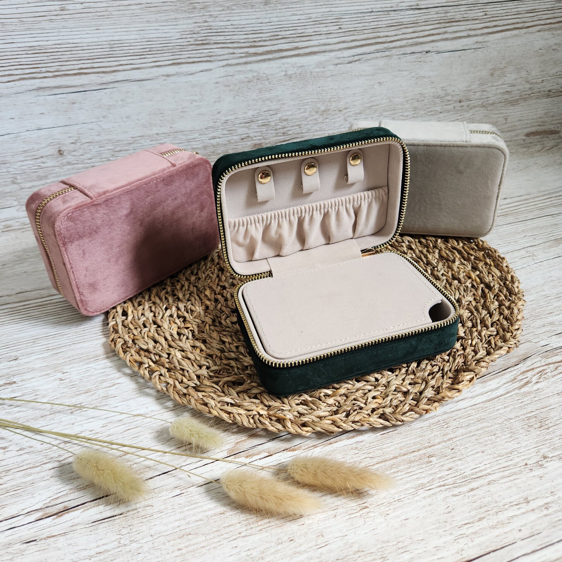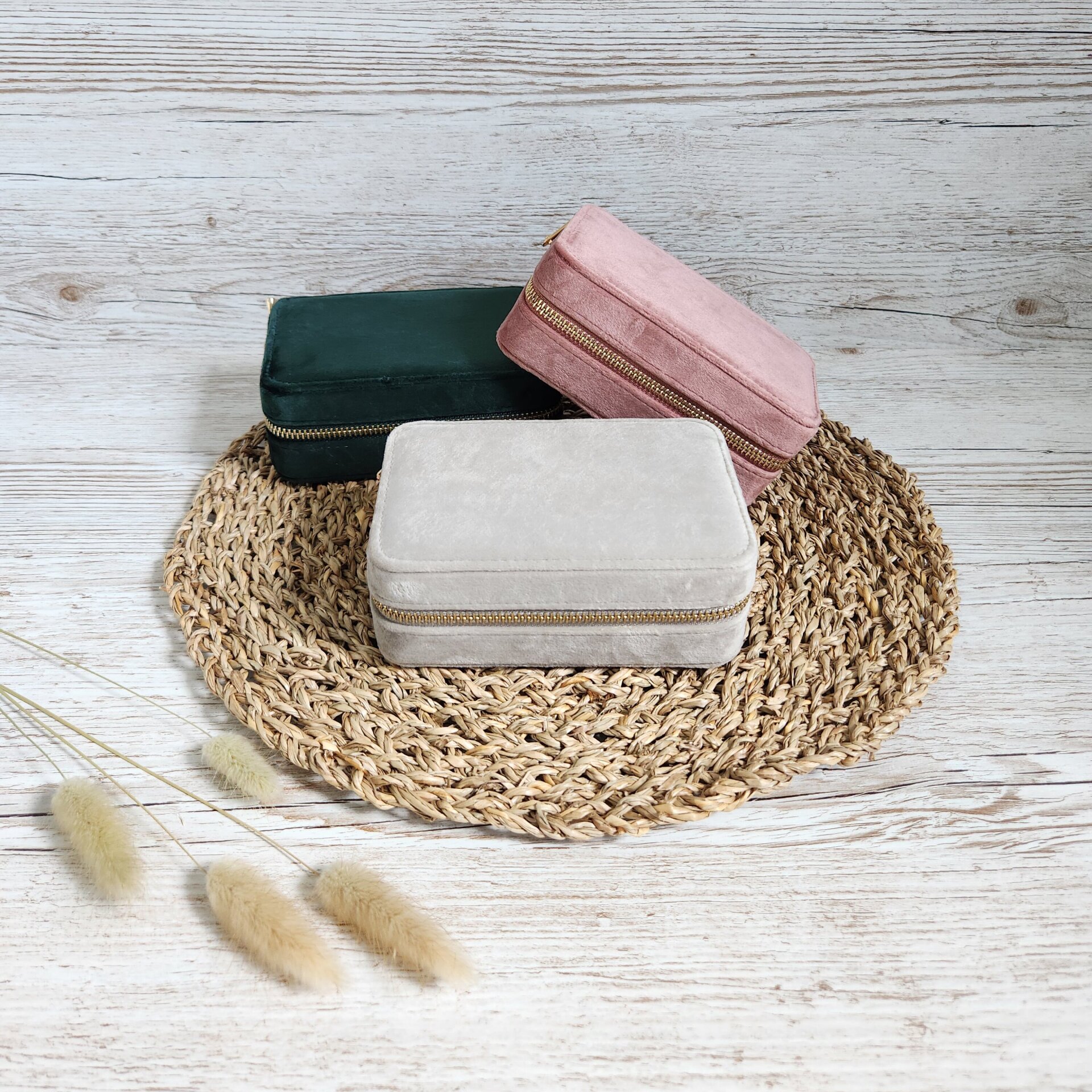- Schmuck-Etui aus Samt in 3 Farben: Rosé, Grau, Smaragd